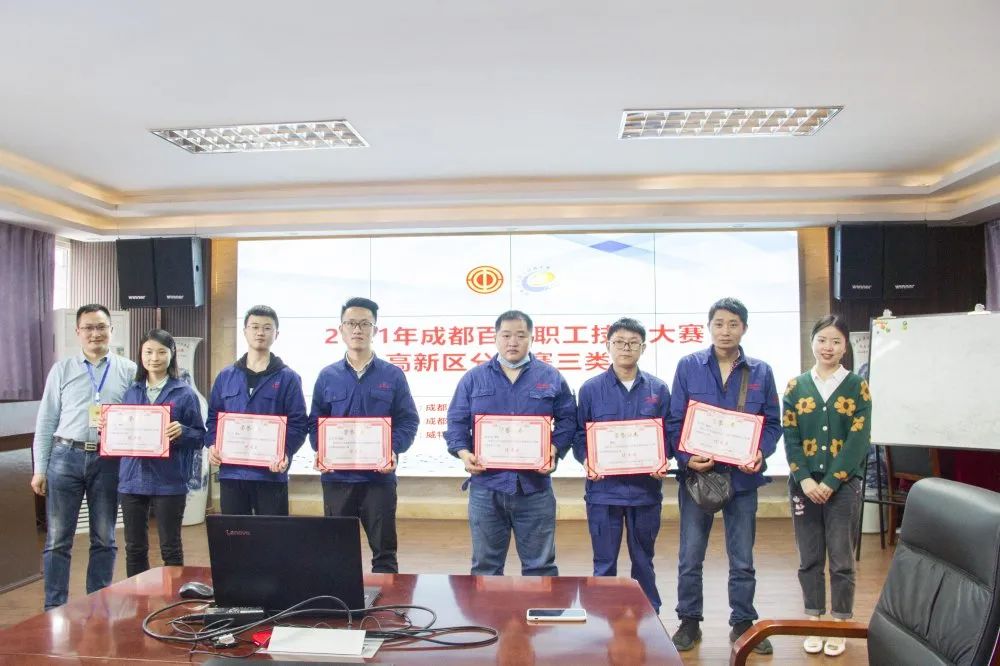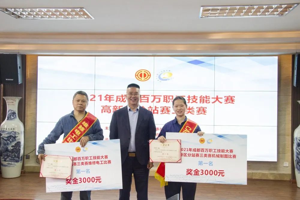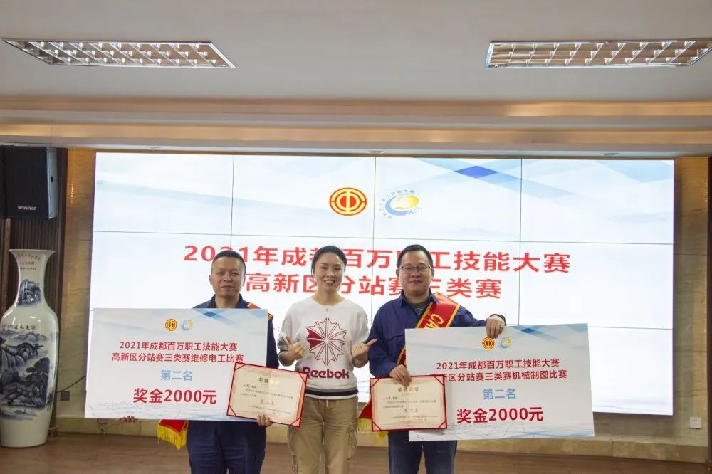 成都高新区西园街道总工会工作人员到场指导比赛工作,并代表赛事主办方,与公司领导一起为获奖工人颁奖。